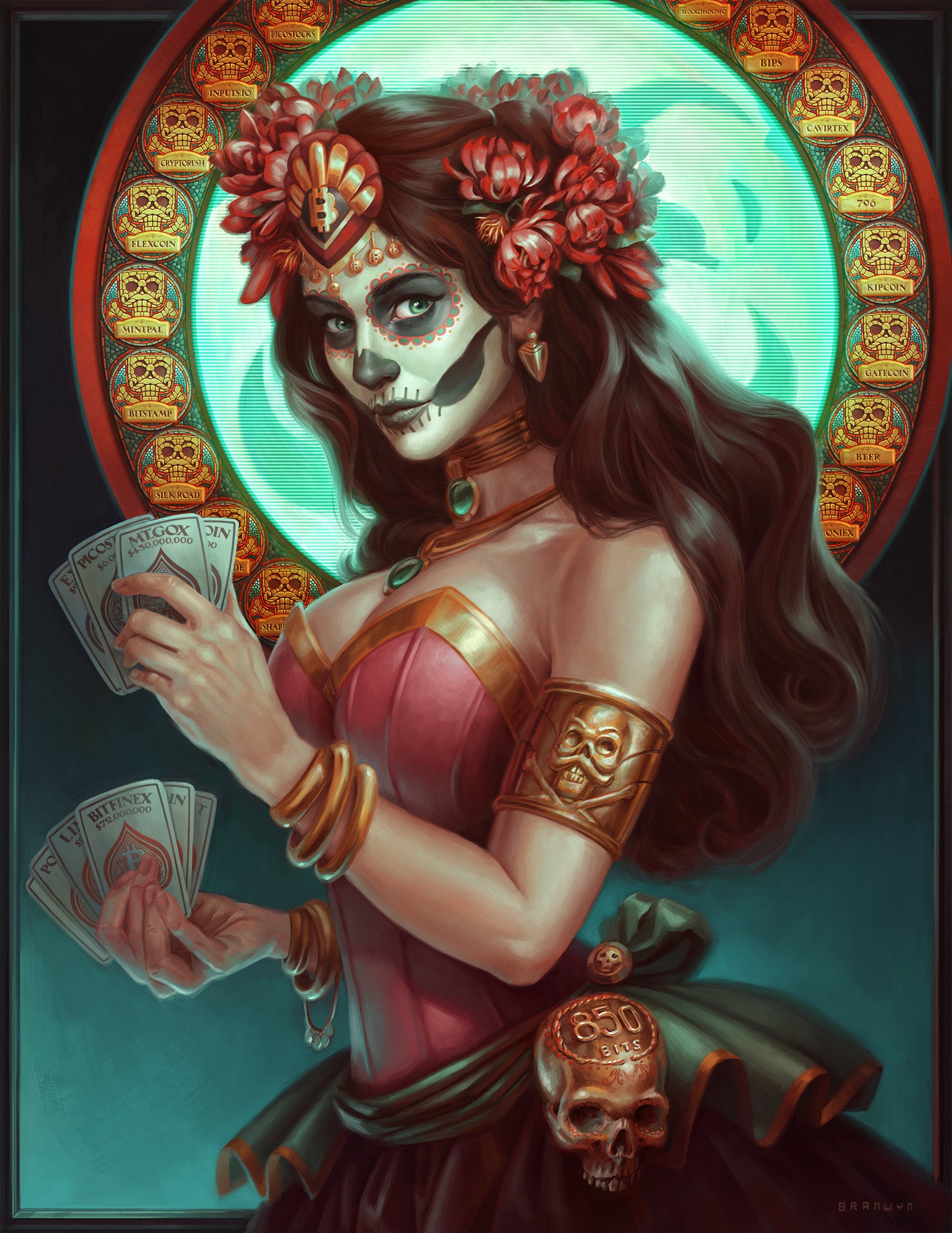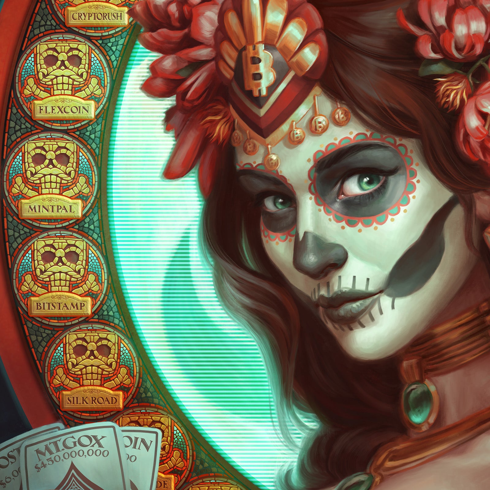 "pwned" is a mash-up of Día de los Muertos and the crypto culture. If Bitcoin had its own Day of the Dead, we would remember and remind ourselves that, while the Bitcoin transaction network is incredibly secure, central repositories like exchanges are not. Be your own bank and do not park your coins long-term with a third party! Take notice of the compromised exchanges and the value they lost.